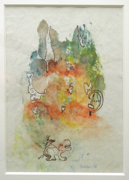 Aquarell, Kleber, schwarzer Filzstift auf Papier, 21 x 30 cm